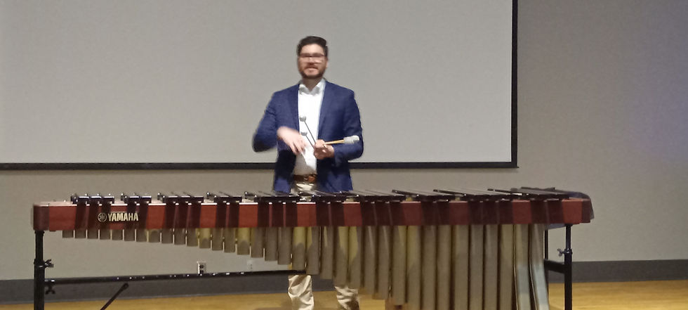 Dr. Fisher entranced a spellbound audience with his performance of “12 Preludes for Marimba,” a sequence of haunting soundscapes composed by contemporary classical musician Juri Seo. Dr. Fisher recently received his Doctorate of Musical Arts in percussion performance from Yale University, and you can tell that he’s been doing his homework. Holding two mallets in each hand, his arms waved over the keys of the marimba like a magician’s, the mallets bouncing with astonishing precision to summon effects from the instrument that sometimes sounded like wind and rain, sometimes like sunlight on snow, sometimes like wildflowers blooming into life and sometimes like the same flowers shriveling into soft decay. The tones of avant garde marimba music echoed through the Littlefield Recital Hall of UB’s Arnold Bernhard Center, filling our ears and resonating through our bones and soft tissue and transmitting their otherworldly vibrations into the recesses of our minds.